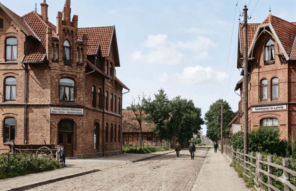 Hinter der Schranke wird die Marktstraße zur Ahltenerstraße. Diese war eine der drei frühen Ortsaus/Eingänge.